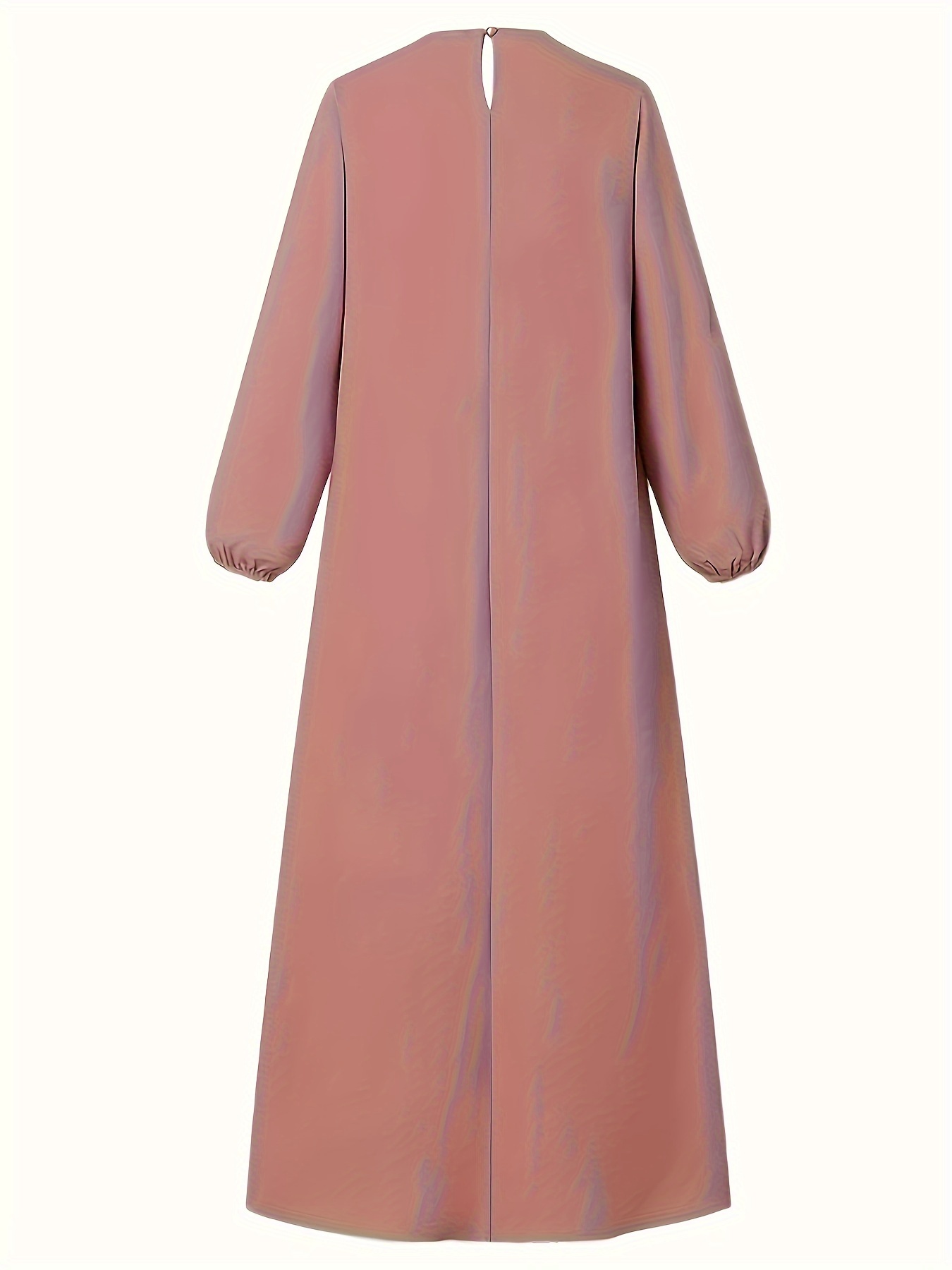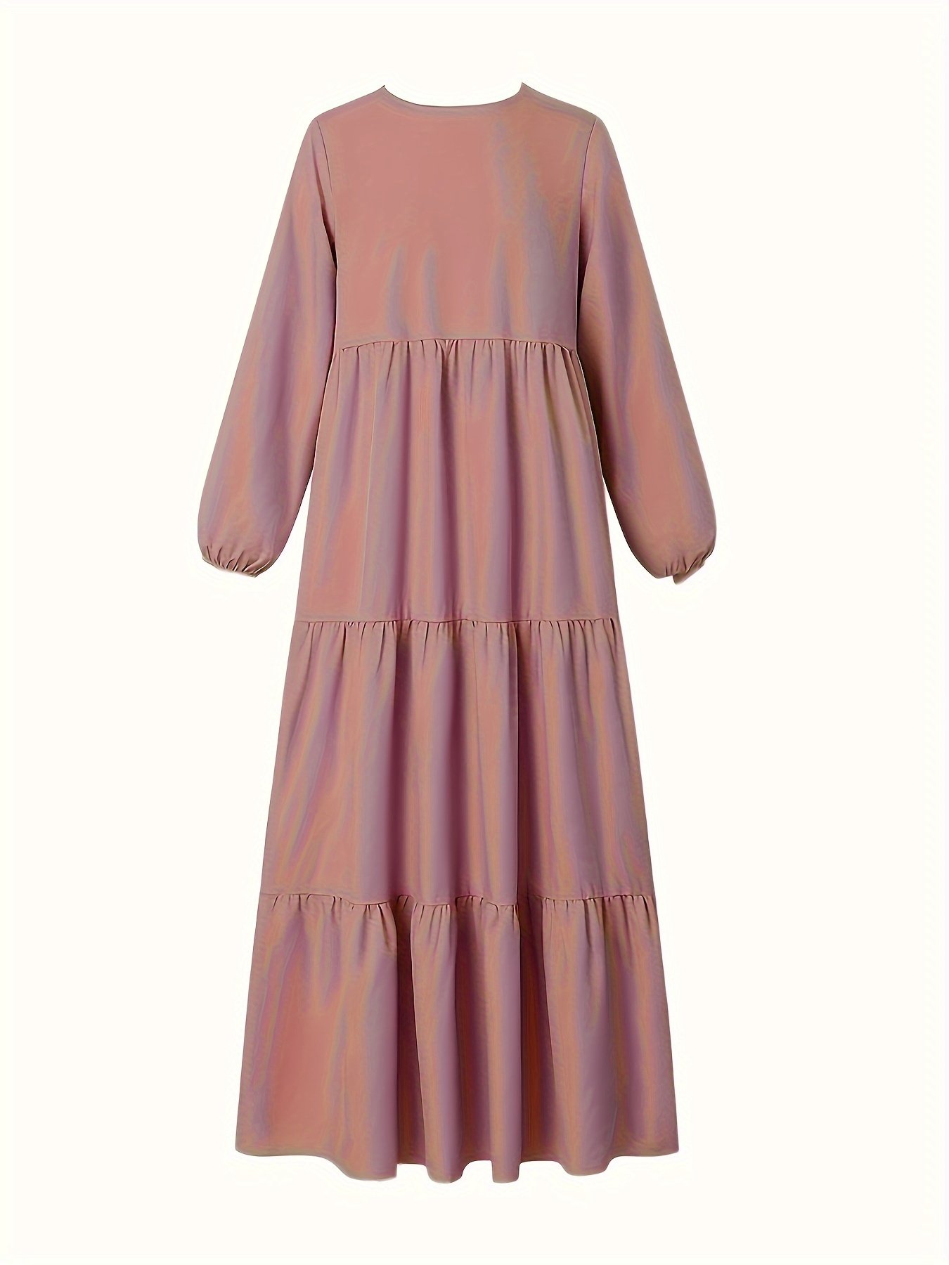 فستان ماكسي بأكمام طويلة على شكل حرف A، مصنوع من 100% بوليستر، بلون موحد، قماش منسوج