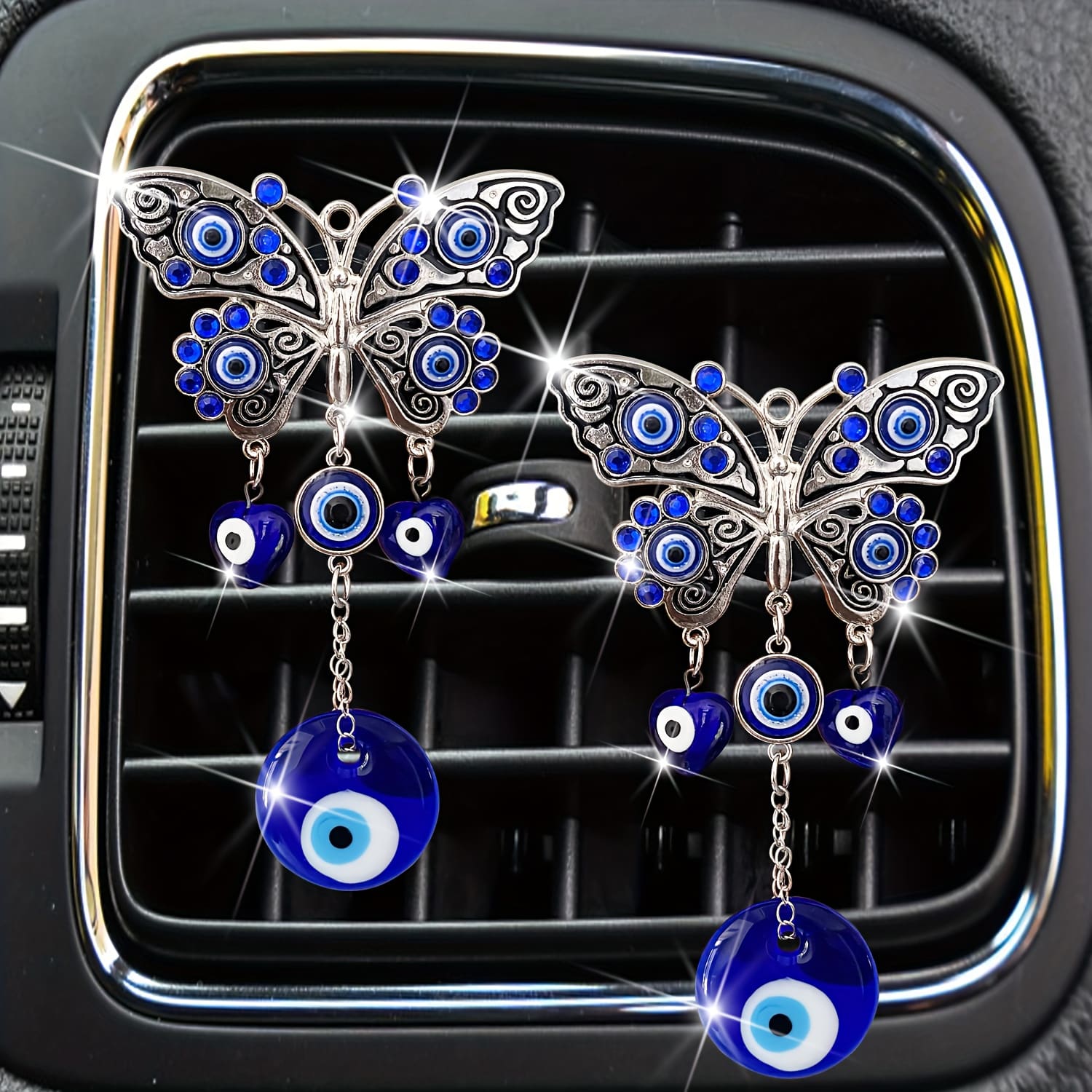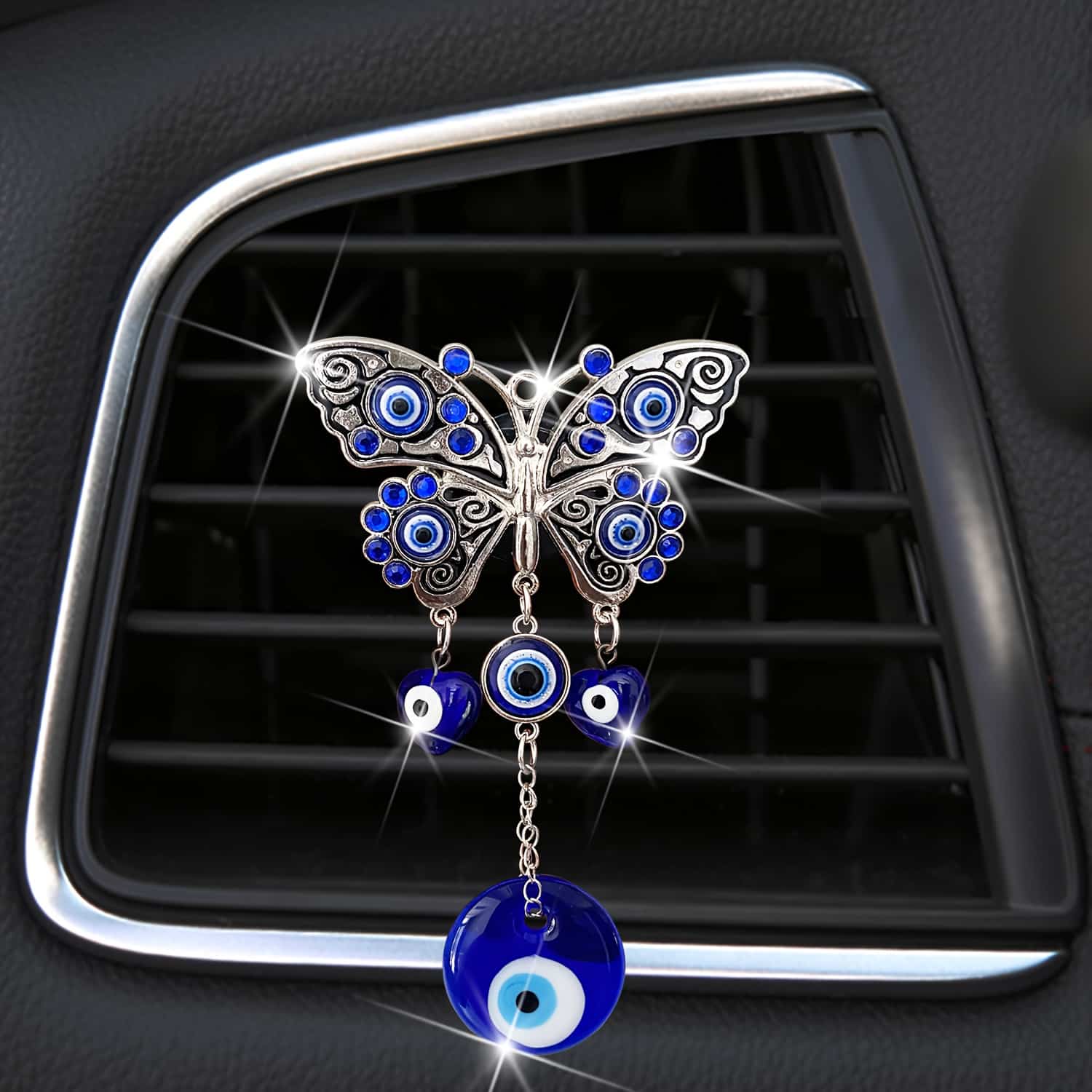 معطر سيارة بتعليقة فراشة زرقاء وعين حارسة لفتحات التهوية