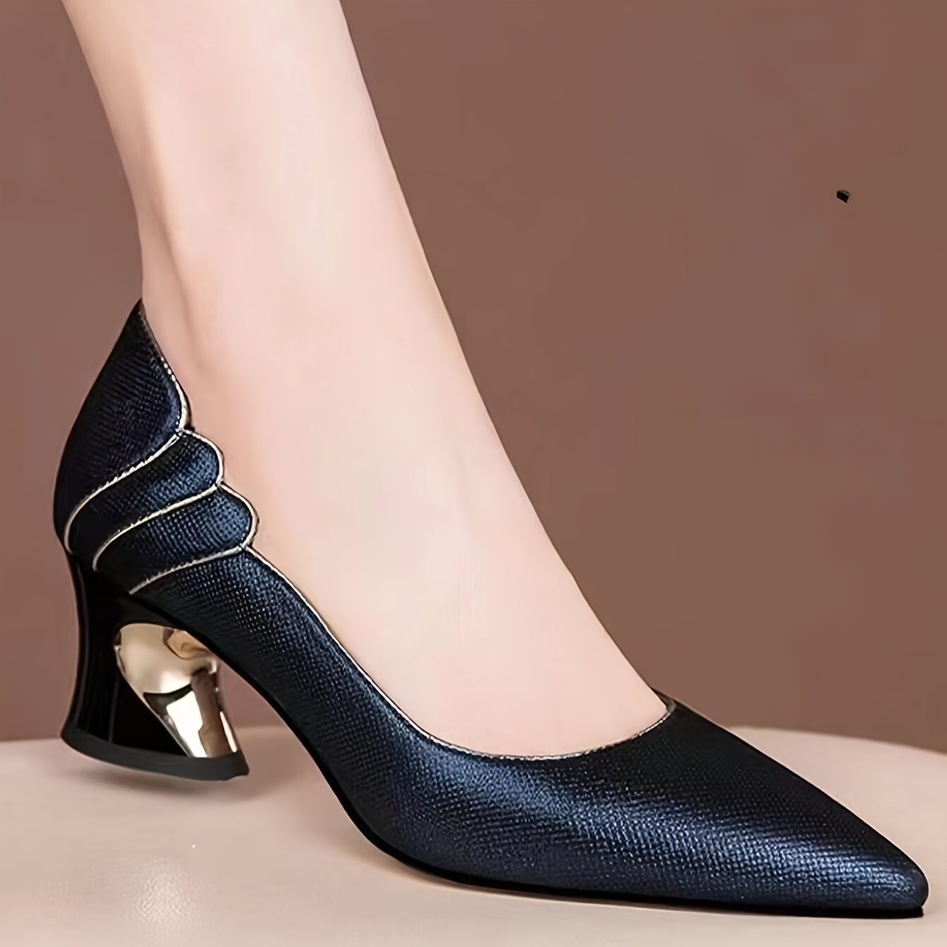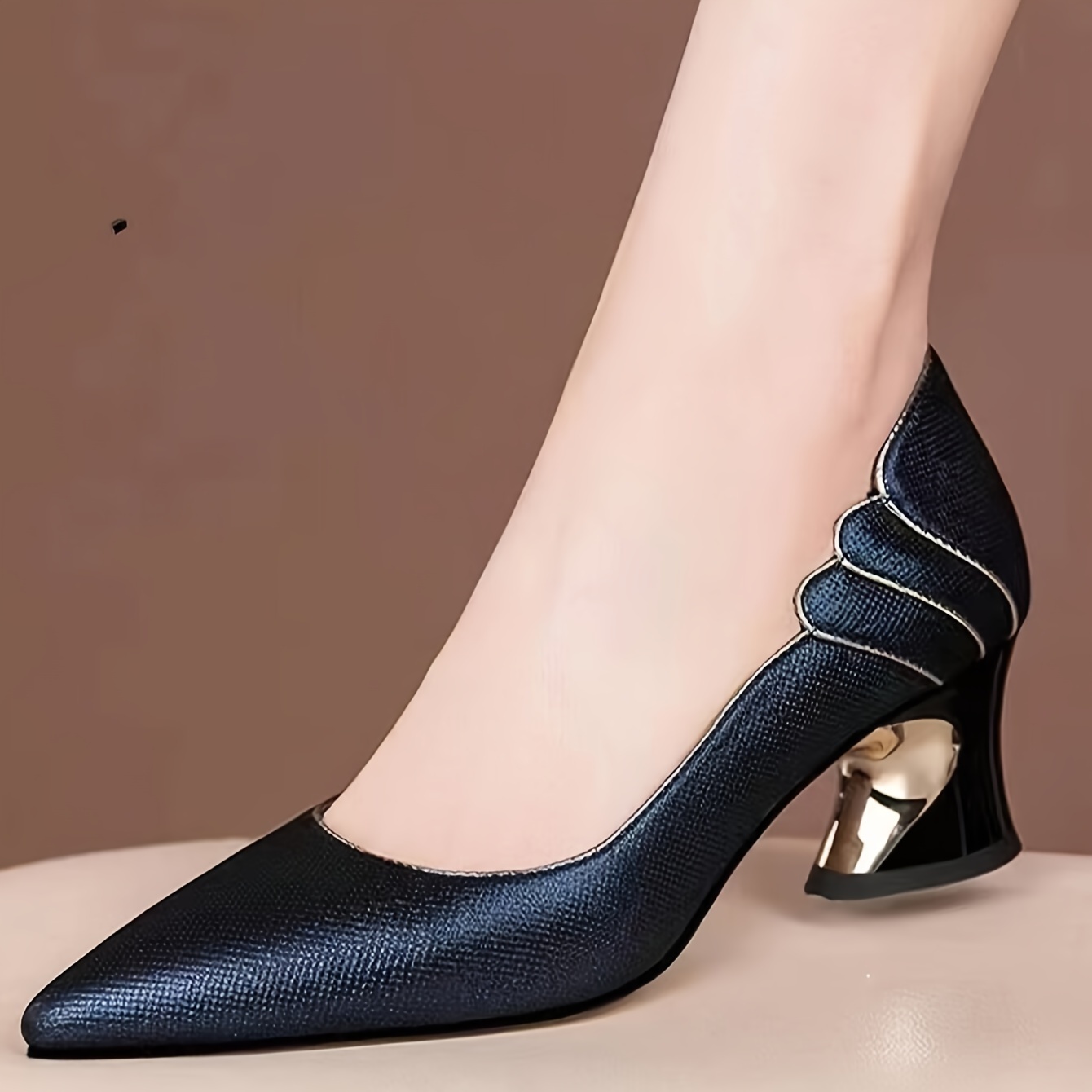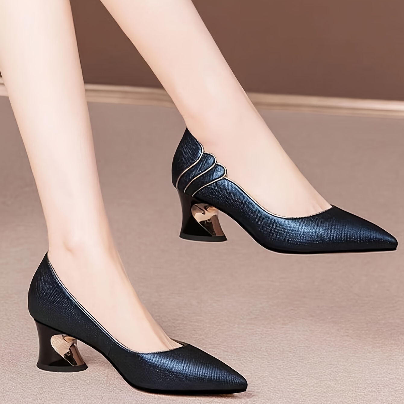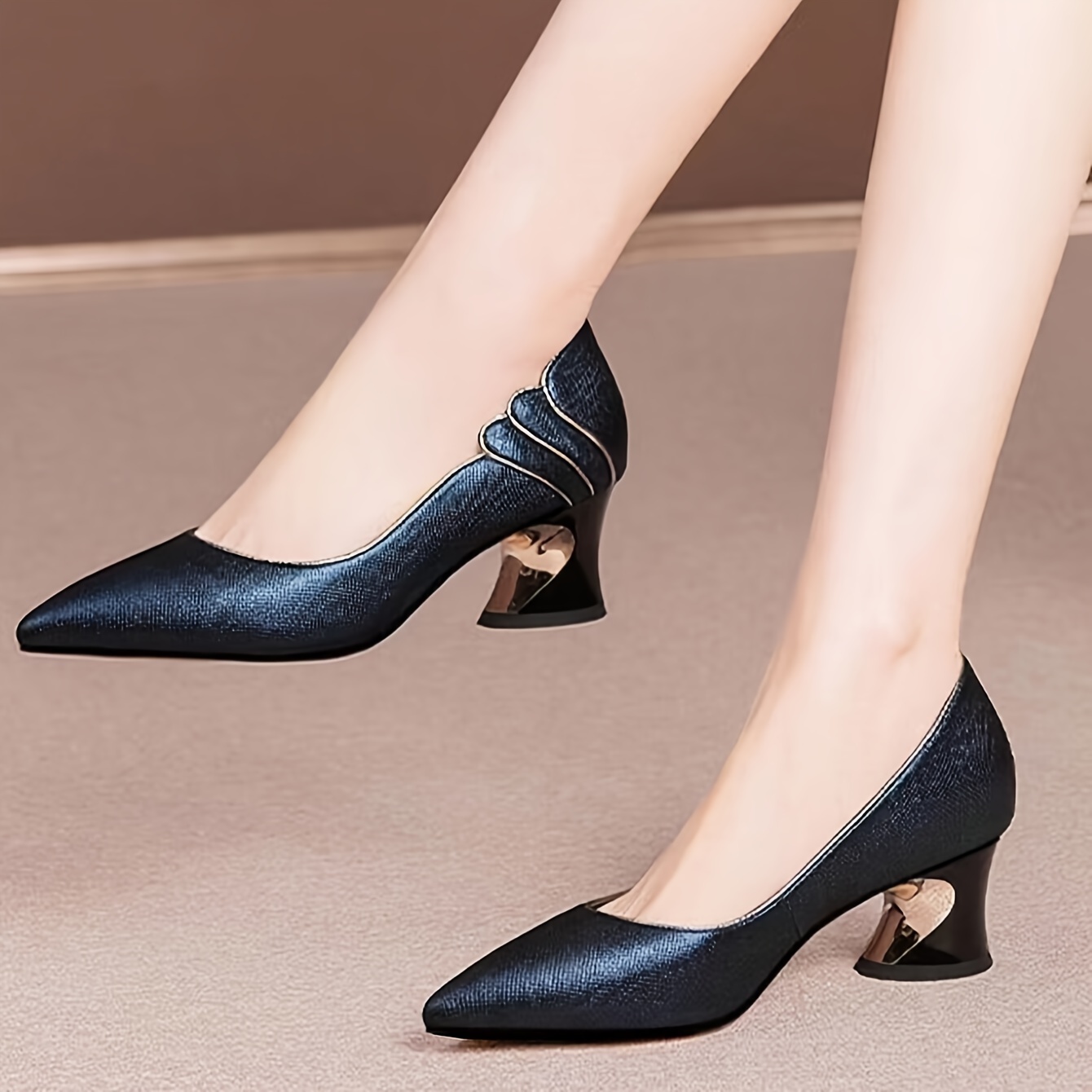 حذاء نسائي بكعب مكتنز بلون موحد، حذاء أنيق بمقدمة مدببة، حذاء نسائي بكعب سهل الارتداء