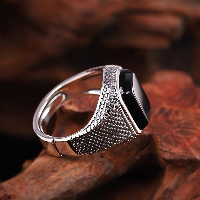 خاتم زركونيا مكعبة أسود بتصميم كلاسيكي للرجال – قابل للتعديل، فرقة واسعة بيان الموضة