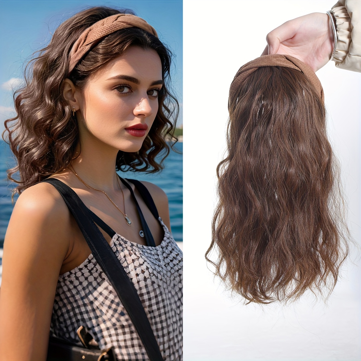 رباط شعر صناعي نصف مجموعة بتصميم تموجات الماء، باروكة خفيفة وتسمح بالتنفس مناسبة للارتداء اليومي
