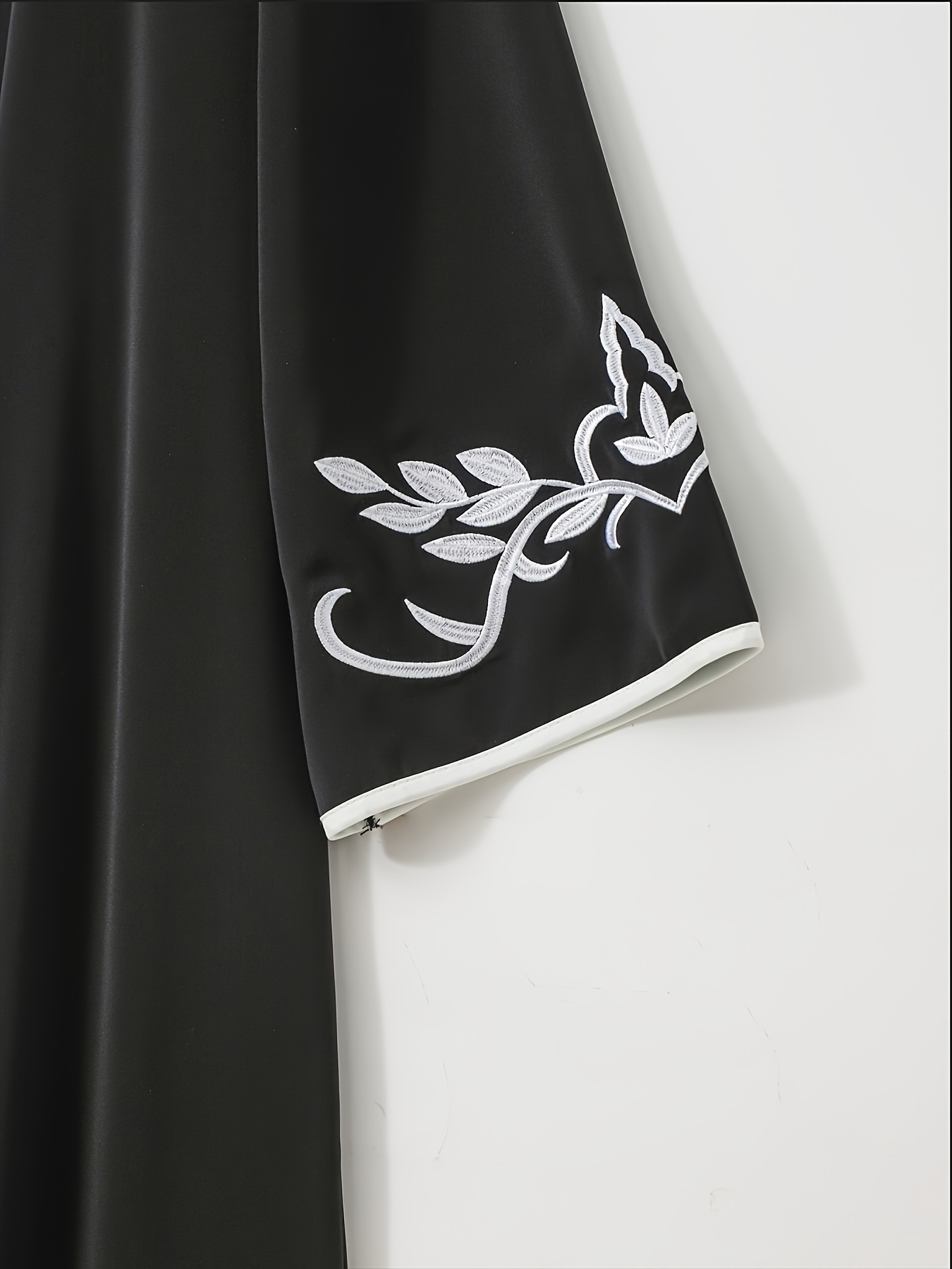 عباية سوداء مطرزة أنيقة – قفطان بنمط هندسي من البوليستر مع أكمام طويلة للنساء، بأسلوب شرق أوسطي