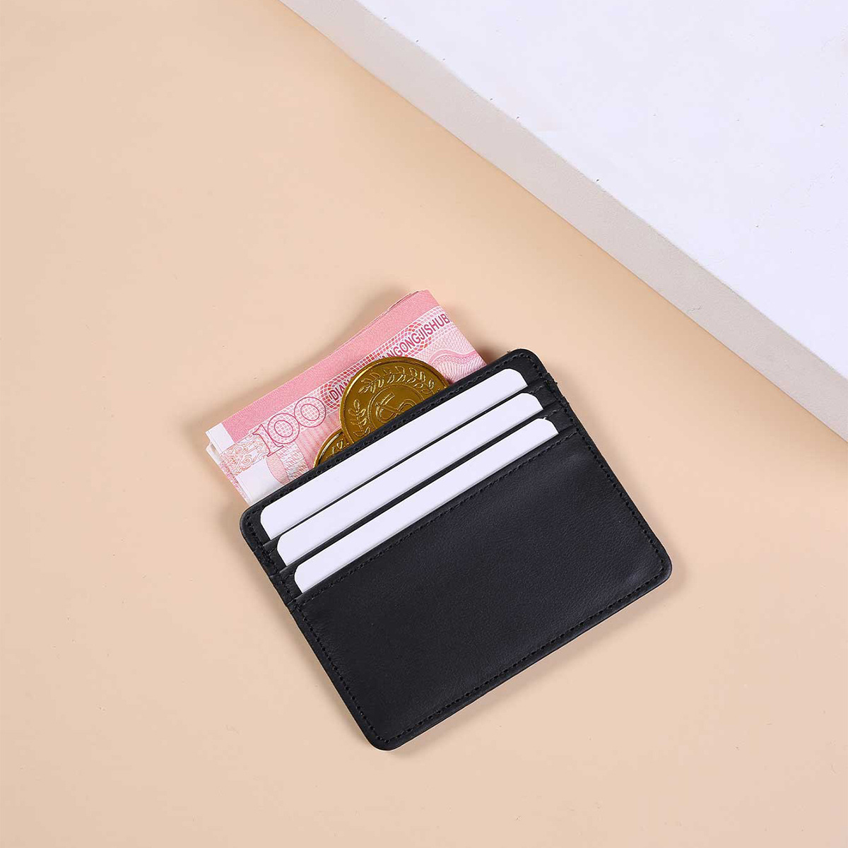 محفظة بطاقات رفيعة من الجلد الصناعي