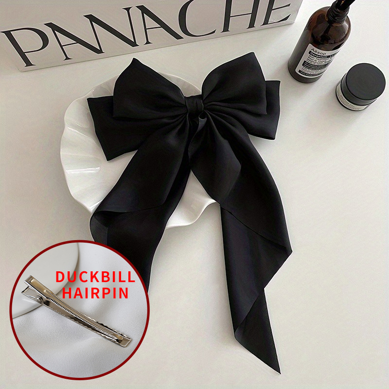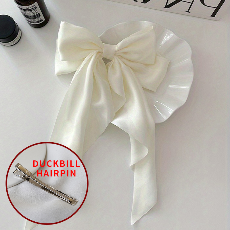مشبك شعر أنيق بتصميم فيونكة كبيرة وشريط، إكسسوارات